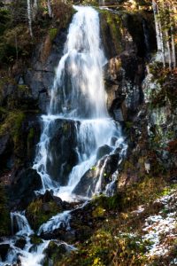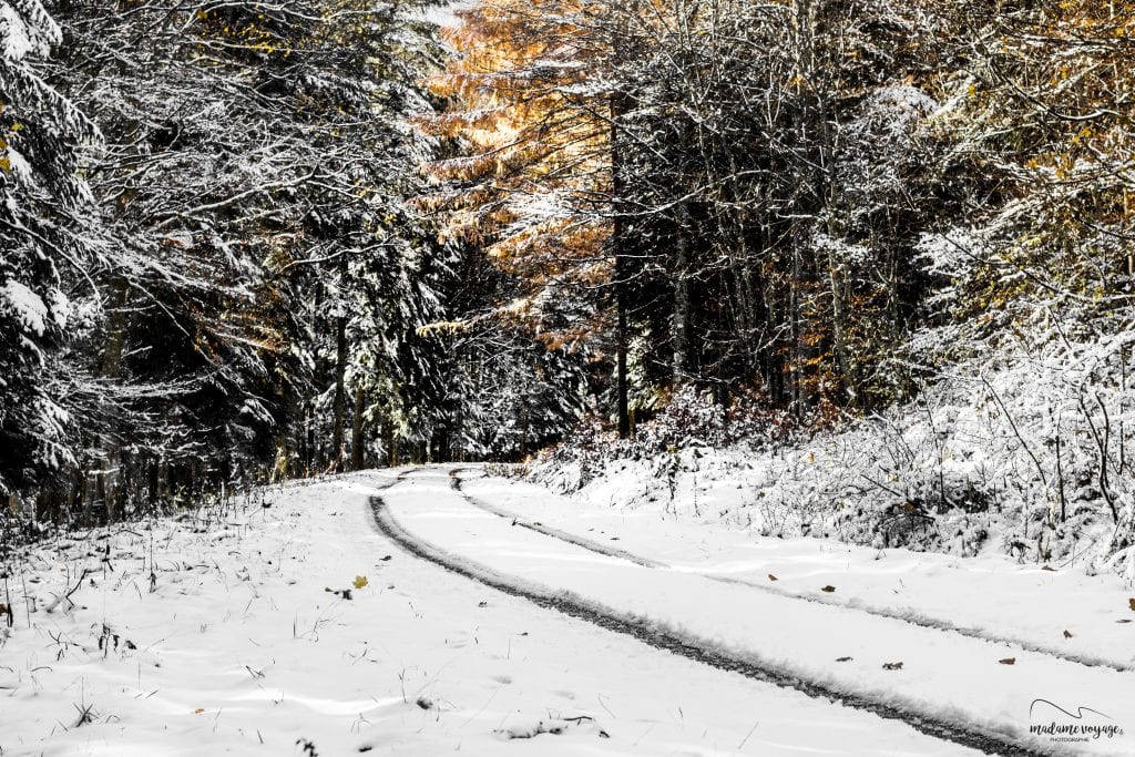 Pour ma première sortie sous la neige, nous avons choisi de partir depuis le parking du Hohwald, en Alsace. J’ai rejoins la très belle cascade du Hohwald, grimpé jusqu’au Champ du Feu en passant par la source de l’Andlau. A cette époque, les paysages sont splendides et si variés que j’en perds mes repères. Entre la cascade qui coule à flot, et la neige plus haut, c’est un spectacle.