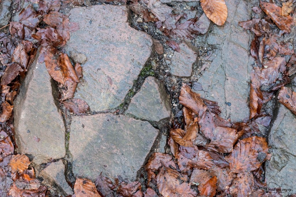 Le début du circuit est la partie la plus compliquée. Il y a un passage en escalier qui n’est pas simple à franchir en Enduro. Pour le passer, je me mets sur une petite vitesse, et j’enclenche directement le mode d’assistance « turbo ». Le revêtement est très glissant, entre feuilles mortes et cailloux humides, je reste prudente, pour continuer à admirer ces paysages merveilleux sous les bois.
